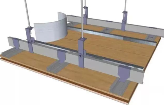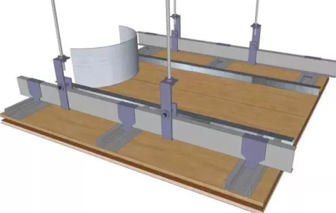 1.龙骨吸顶吊件用膨胀螺栓与钢筋混凝土板固定;