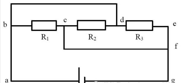 如图,这道题太典型了,估计每个老师都要讲。答案估计大家都知道,同学甲说这个是串联;同学乙说,不对!R1应该被短路了,没看见上面的天线么;这时候老师蹦出来,说你们都错了,实际上是标准的并联电路。倒~,确实不好理解,很多同学老师讲过一遍还是搞不清楚为啥,最后背下结论了事。现在轮到我们的标号大法上场了,为了说明方便,先用字母对每个点进行标记下
