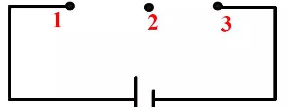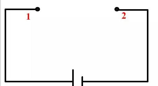 2,这样我们惊奇的发现已经到电源负极了!标号结束!轻松~进入第二步画图阶段,先画出节点号1,2,其中1节点电源正极,2节点接电源负极,如下图;