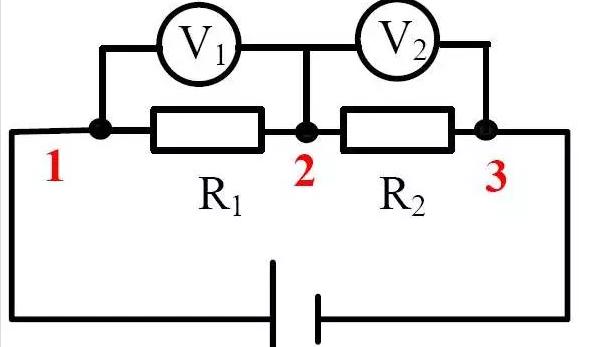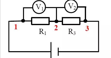 找每个用电器所在的位置,R1和V1在1,2之间,R2和V2在2,3之间,装上即可;R3的g点没有标号,所以没有接入电路