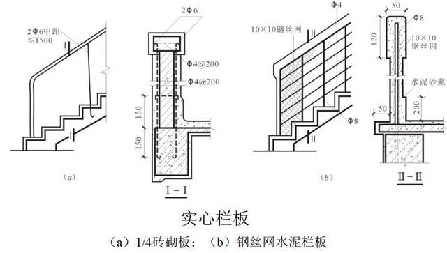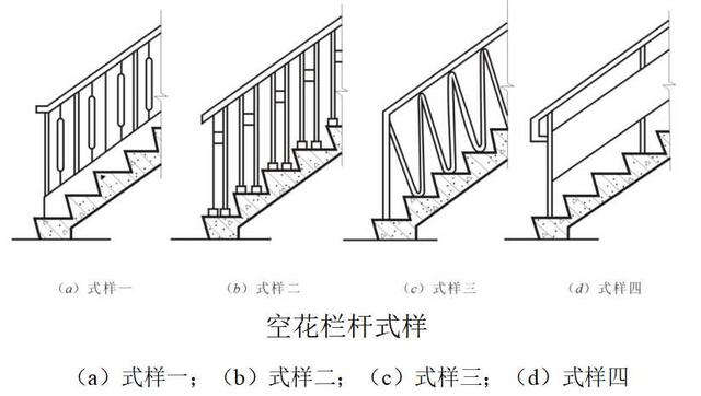 栏杆按其构造做法及材料的不同,有空花栏杆、实心栏板和组合栏杆三种。