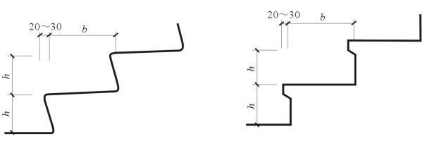 在设计踏步尺寸时,由于楼梯间进深所限,当踏步宽度较小时,可采用踏面挑出或踢面倾斜的办法,以增加踏步宽度。