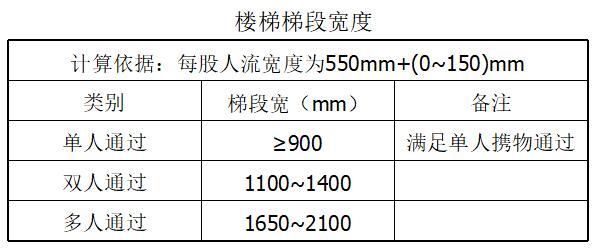 梯段宽度是指梯段外边缘到墙边的距离,它取决于同时通过的人流股数和消防要求。有关的规范一般限定其下限。