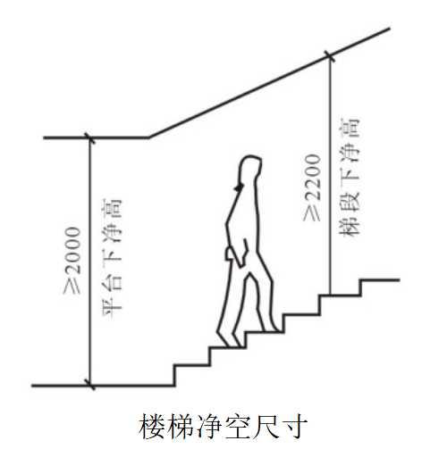 楼梯的净空高度是指平台下或梯段下通行人时的竖向净高。