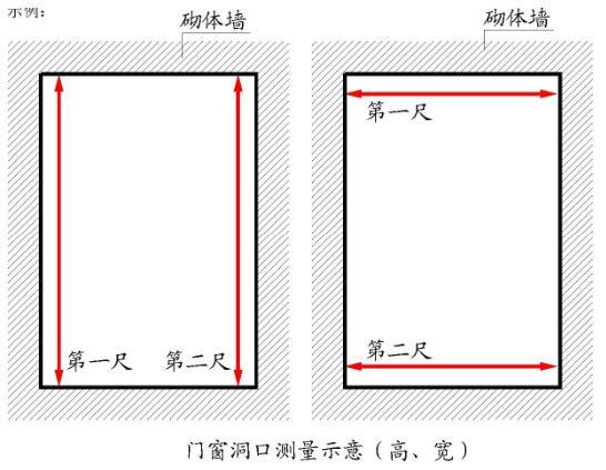 3.2.1 用卷尺检查窗洞口高度、宽度,检查时需根据洞口设计尺寸检查,每个洞口取2 点测量洞口宽度及高度净尺寸(对于落地门窗,在未做地面时,高度可不测),取高度或宽度的 2 个实测值与设计值间的偏差最大值,作为判断高度或宽度实测指标合格率的 1 个计算点。