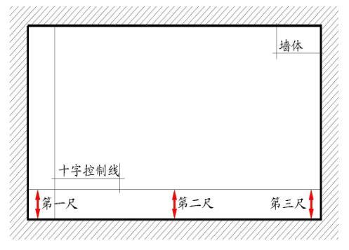 利用卷尺与控制线形成 90 度角测量控制线与墙面之间的距离,每面墙根部两端取两个测量点,两个测量点之间的距离偏差在 6mm 以内视为合格,该组数据的差值视为一个有效样本点;每间房间至少取 8 个测量点。
