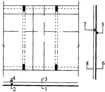 1-板底短向普通钢筋;2-板底长向普通钢筋;3-板底短向预应力筋;4-板底长向预应力筋;5-板顶短向普通钢筋;6-板顶长向普通钢筋;7-板顶短向预应力筋;8-板顶长向预应力筋