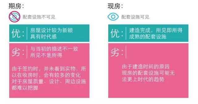 当然,期房也存在不能按时交房,可能发生交房时实际面积与销售面积不符、建材规格不符、配套设施未能按承诺开通使用等麻烦。