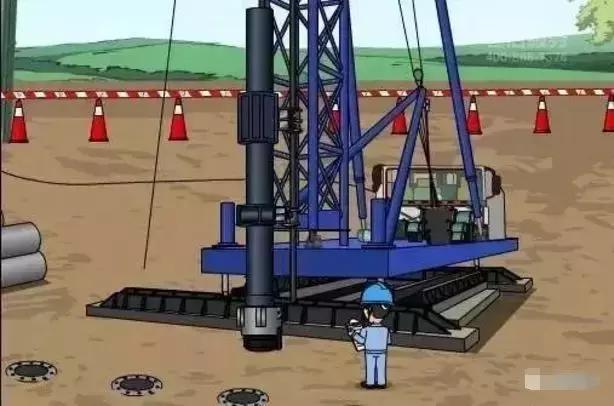 10)当风力超过七级或有强热带风暴警报时,应将桩机顺风向停置,并加缆风绳,必要时,应将桩架放倒在地面上。