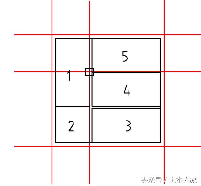 1.模板拼缝在建筑平板铺贴中时经常出现的,模板的尺寸一般为915mm*1830mm(或者1220mm*2440mm,通常情况下现场使用的是前一种),以3000mm*3000mm的轴网为例,若放线洞(300mm*300mm)的预留位置为偏轴线1000mm, 则可能会出现以下一种影响放线洞点引到上一层的情况