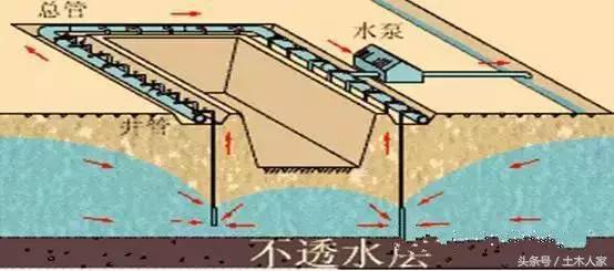 3、一般要求地下水位降到基坑底高程以下0.5~1米,以保持基坑在开挖期间的干燥状态,同时也保障开挖过程中基坑边坡的稳定性。