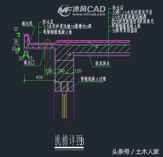 挑檐平板上表面防水=挑檐平板中心线长度*平板宽度