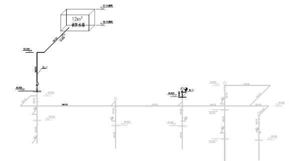 (3)环状管网的标高为-0.700m,与消防水泵的接入管同标高。
