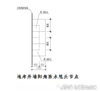今天的重点是车库顶板边缘部位阳角节点的优秀做法展示,如何将地库顶板阳角部位的防水做好,使得立面防水与顶板平面防水进行有效的闭合,达到地下室整体防水的一个效果。