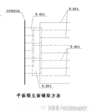 地下室顶板的防水卷材可以根据实际选择两个方向的铺贴方法,下面将两种铺贴方法均介绍一下: