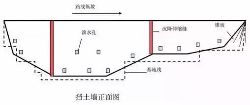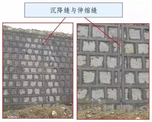 设计时,一般将沉降缝和伸缩缝合并设置,沿路线方向每隔10~15m设置一道,兼起两者的作用。缝宽2~3cm,缝内一般可用胶泥填塞,但在渗水量大、填料容易流失或冻害严重地区,则宜用沥青麻筋或涂以沥青的木板等具有弹性的材料,沿内、外、顶三方填塞,填深不宜小于0.15m;当墙后为岩石路堑或填石路堤时,可设置空缝。
