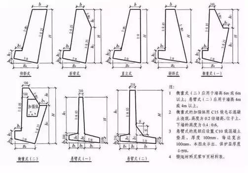 重力式挡土墙可根据其墙背的坡度分为以下几种类型: