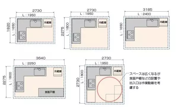 L字型的移动空间是非常方便的,一转身就能进行下一项操作,对于使用轮椅的情况是比较理想的排布。