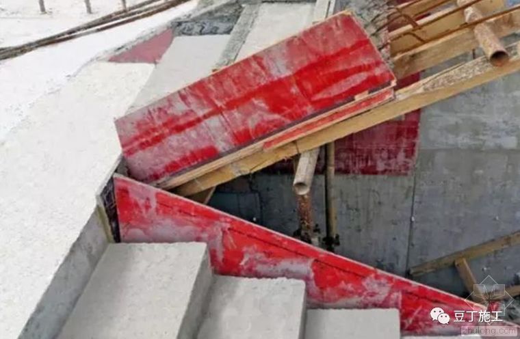 (1)加强施工尺寸和标高控制,确定楼梯第一步和最后一步阳角位置,拉通线,在斜线上等分梯段,确保踏步的阳角在一条直线上,支撑要稳固。