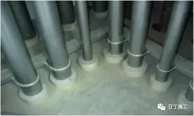 穿楼板和墙体管道安装时必须按要求加设套管,套管要参照规范要求和土建完成面做法确定其预制长度。安装在墙壁内的套管其两端与饰面相平;安装在楼板内的套管,其顶部高出装饰地面 20mm; 安装在卫生间及厨房内的套管,其顶部高出装饰地面 50mm,底部应与楼板底面相平,套管周围用细实混凝土填充密实、养护到位,无渗漏。外露套管部分刷漆防腐、套管与管道之间缝隙宜采用阻燃密实材料填充,且端面应光滑。成排管道的套管还要做到整齐划一。套管安装平直,排水管居中。