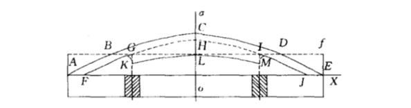 图中,超长混凝.土使用普通混凝土的温度收缩应力曲线为.ABCDE,.其应力从两边.向中间增长到.B,.D.两点时.,f(.混凝土.抗拉强度),.开始发生开裂,.释放能量;.仅采用小掺量膨胀混凝土.进行补偿的超长混凝土结构,.能够抵消部分温度收缩应力,.其温度.收缩应力曲线为FGHIJ,.应力从两边向中间随结构长度延伸而增长,.达到.G、I两点时,.f,.开始发生开裂,.掺膨胀剂的混凝土达.到开裂时的结构长度较普通混凝土延长,.起到一定补偿作用。