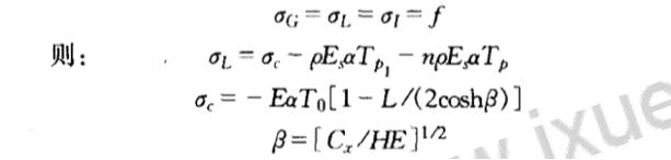 在上图中,当普通膨胀混凝土温度收缩应力从两边增长到G,J两点时,两点的拉应力达到混凝土的抗拉强度,如再增长结构就会发生开裂,必须在G,J两点增设膨胀加强带,进一步降低拉应力,增设加强带后,G,J两点的拉应力降低到K,M点,温度收缩应力从K,M两点重新增长,但结构中点L处最大拉应力不超过混凝土抗拉强度,结构不会发生开裂。这样G,L,I三个临界点拉应力为: