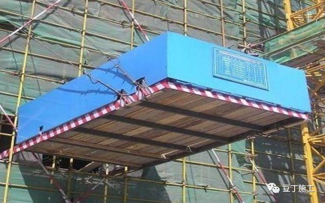 2、施工人货梯、物料提升机入口处搭设防护棚。