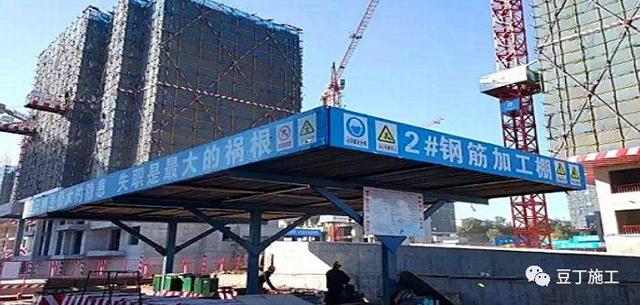 1、钢筋加工场独立设置,有安全防护棚(宜采用工具式),钢筋原材架空堆放,钢筋半成品分类堆放,钢筋挂设标牌(标明其钢材产地、规格、进场日期、检验状态、编号、使用部位等)。