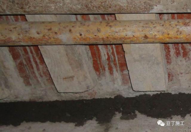 3、在模板施工过程中项目部成员积极总结,在模板阴角处应用5050mm方木,有效保证阴角的方正;墙模板拼装高度比设计高度减少10mm并将此缝隙留在模板底部,便于支设完成后的模内清理,在混凝土浇筑前用水泥砂浆封堵,有效地解决了混凝土墙体根部漏浆、夹渣现象;为保证剪力墙截面尺寸,使用质量好的成品混凝土支撑控制墙体截面尺寸。