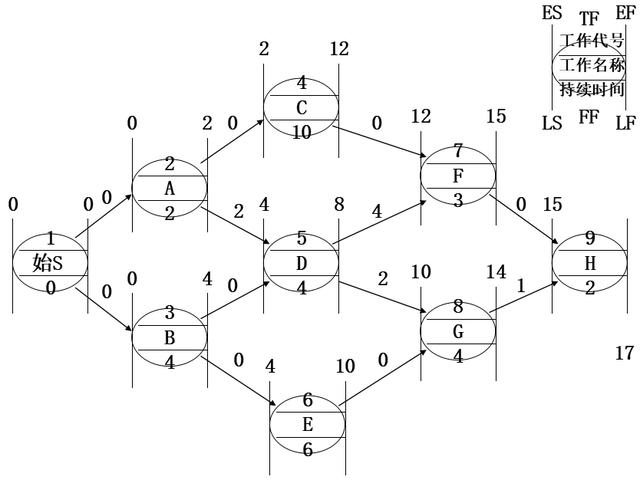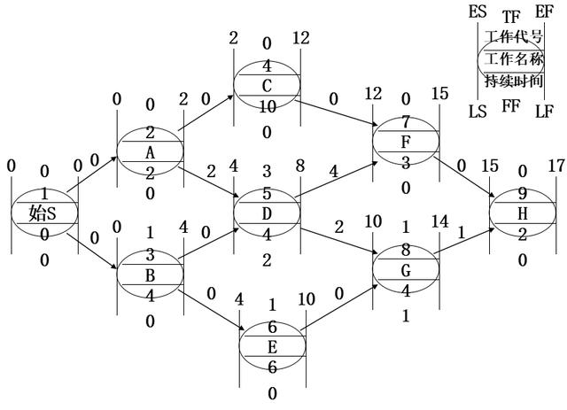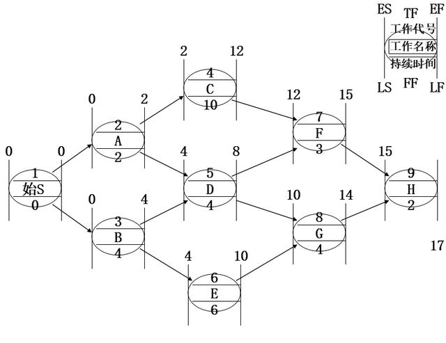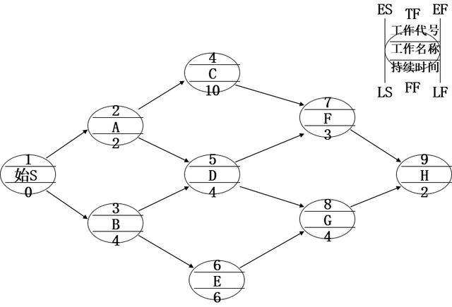 节点所表示的工作名称、持续时间和工作代号等应标注在节点内。