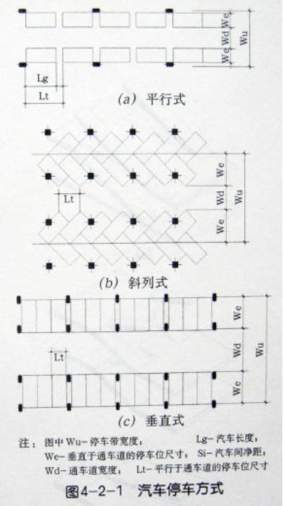 平行停车方式车辆进、出车位更方便、安全,但每辆车因进出需要而占用的面积较大,