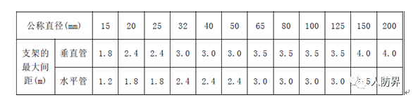 3、钢管水平安装的支、吊架间距应符合下表的规定: