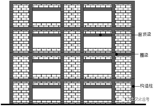 3、构造柱、(芯柱)、圈梁、现浇楼板,共同构成弱框架砌体结构体系;