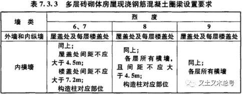 1 装配式钢筋混凝土楼、屋盖或木屋盖的砖房,应按表7.3.3的要求设置圈梁;纵墙承重时,抗震横墙上的圈梁间距应比表内要求适当加密。