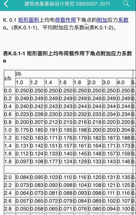 验算软弱下卧层强度时,关键问题是需要了解软弱下卧层顶面处的附加应力,对于压缩模量的比值小于3的情况,说明持力层与下卧层的刚度相差不太大,可以用均质土的应力分布的计算方法计算软弱下卧层顶面处的附加应力,应力系数就可以用《建筑地基基础设计规范》附录K.0.1的表查用。