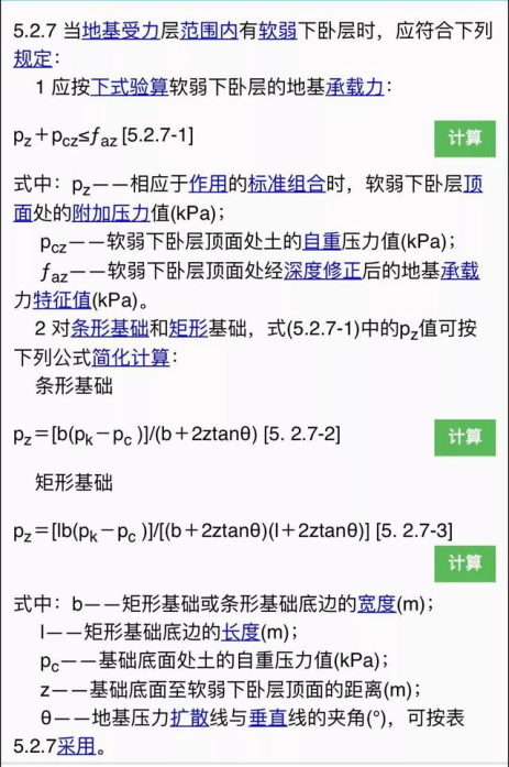 但压力扩散角并不随z/b的变化而变化,由于应力分布是和计算点的相对埋深z/b有关的,软弱下卧层验算时 计算点在持力层底部,硬层就用持力层的厚度和基础宽度的比值来描述尺寸效应,仅是一种几何的关系。