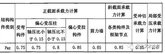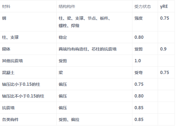 现阶段大部分结构构件截面抗震验算时,采用了各有关规范的承载力设计值Rd,因此,抗震设计的抗力分项系数,就相应地变为非抗震设计的构件承载力设计值的抗震调整系数RE,即RE=Rd/RdE或RdE=Rd/RE。