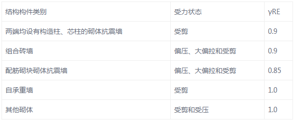 RE承载力抗震调整系数承重墙按本规范表 5.4.2 采用,自承重墙按 0.75 采用。