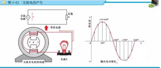 交流电是由交流发电机产生的,交流发电机有产生单相交流电的机型和产生三相交流电的机型。
