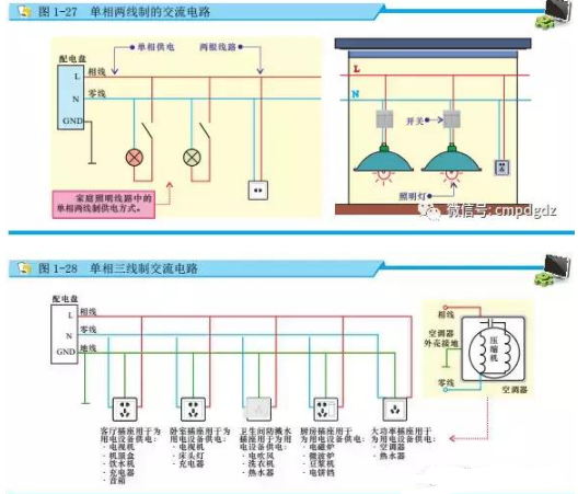 供电方式主要有单相两线制、单相三线制,一般的家庭用电都是单相交流电路。