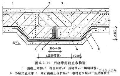 6、后浇带应强调施工管理。施工质量与防水效果直接相关。
