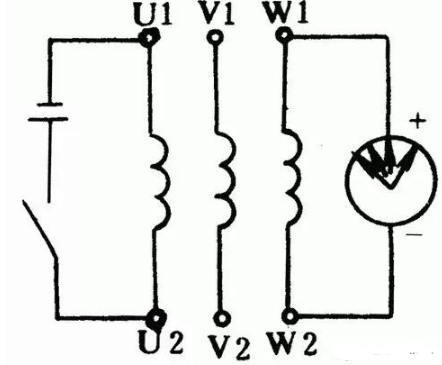 再将电池和开关接另一相两个线头,进行测试,就可正确判别各相的首尾端。