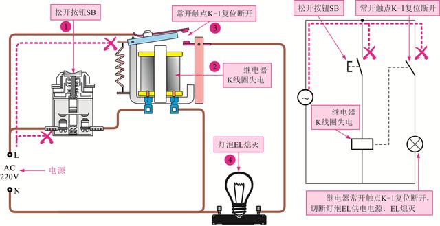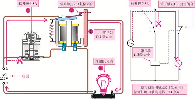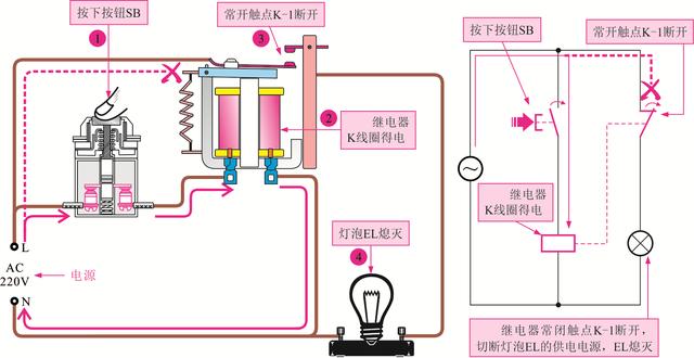 继电器工作时,通过在线圈两端加上一定的电压,线圈中产生电流,从而产生电磁效应,衔铁就会在电磁力吸引的作用下克服复位弹簧的拉力吸向铁心,来控制触点的闭合,当线圈失电后,电磁吸力消失,衔铁会在复位弹簧的反作用力下返回原来的位置,使触点断开,通过该方法控制电路的导通与切断。