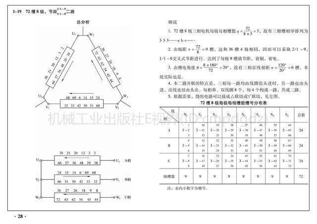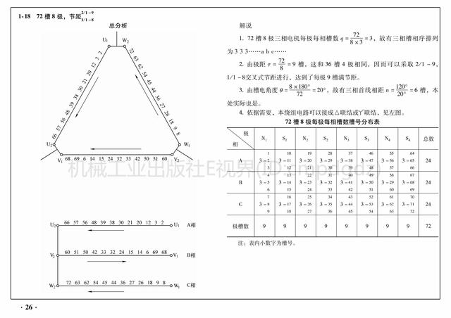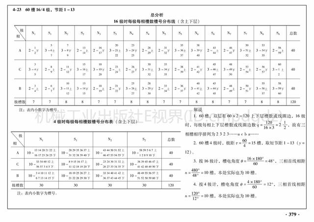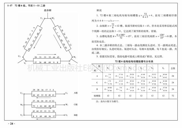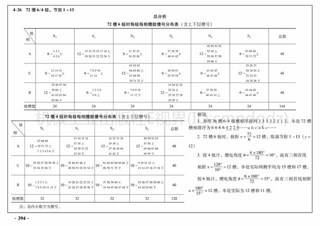 2)每极每相的槽数槽号都列成表,可以更清楚地认识它们相互之间的关联,合理地掌握工作原理。