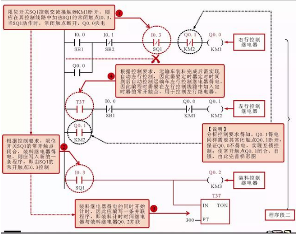 2)30s装料及自动左行控制过程的西门子PLC梯形图