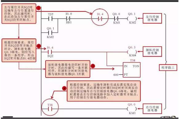 3)60s卸料及自动返回(右行)控制过程的西门子PLC梯形图