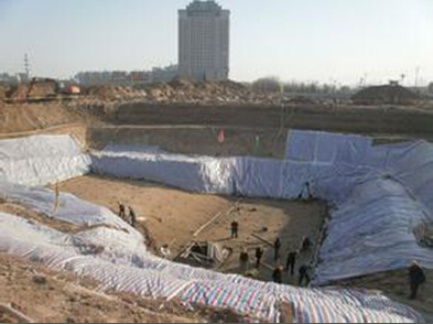 回填过程中如遇暴雨,用塑料布覆盖,雨后回填前,认真做好填土含水率测试工作,含水率较大时将土铺开晾晒,待合格后再回填。