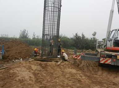 d)桩基施工前,应整平场地并碾压密实,四周做好排水沟,防止地表松软致使打桩机械倾斜。