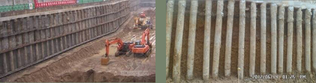 b)护坡桩施工