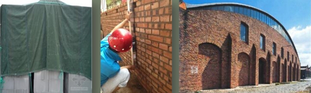 a)施工前准备足够的防雨应急材料,尽量避免砌体被雨水冲刷,以免砂浆被冲走,影响砌体的质量。